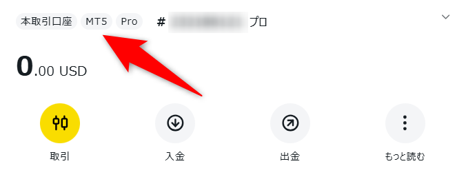 取引プラットフォームは、各口座の上部に「MT5」もしくは「MT4」と記載があります。