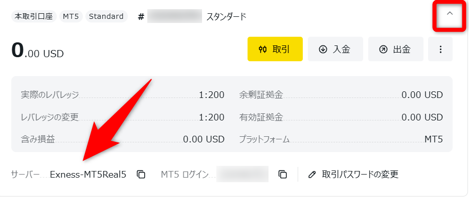 サーバー名を確認するには、まず口座情報の右上にある「」ボタンを押し、より詳しい口座情報を表示させます。