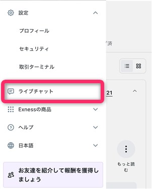 パソコンの場合は画面右下にある黄色のチャットボタン、スマホ場合は画面左上にある三本線からメニューを開いて「ライブチャット」をタップしましょう。