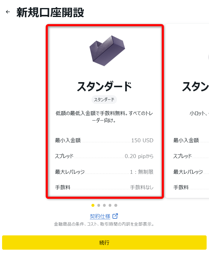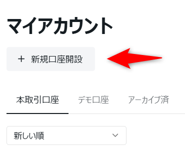 上の写真のように「+新規口座開設」というボタンを押しましょう。